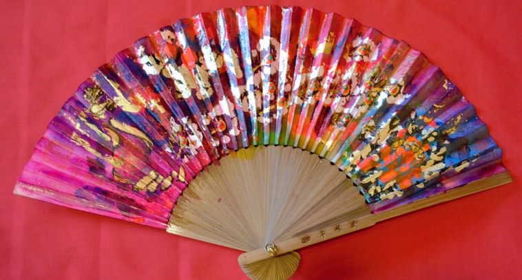 Mixed media on Rice paper. 24k gold, 18k gold, silver; Fluorescent and glow under UV light; 106 cm x 75 cm (painting with frame)