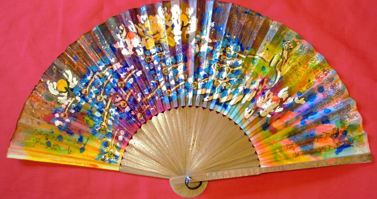 Mixed media on Rice paper. 24k gold, 18k gold, silver; Fluorescent and glow under UV light; 76 cm x 55 cm (painting with frame)