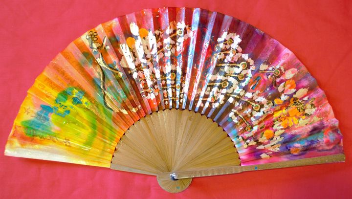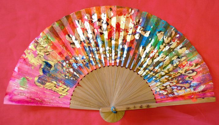 Mixed media on Rice paper. 24k gold, 18k gold, silver; Fluorescent and glow under UV light; 125 cm x 81 cm (painting with frame)