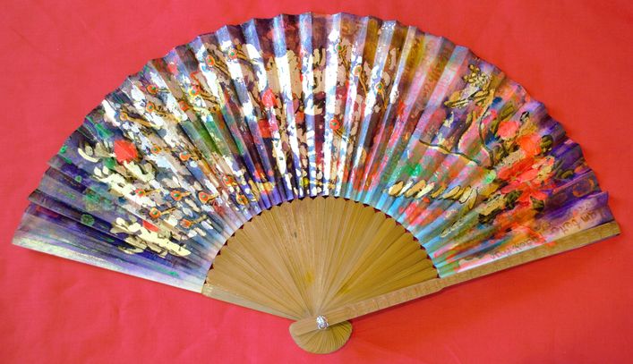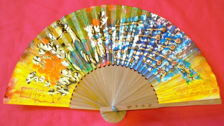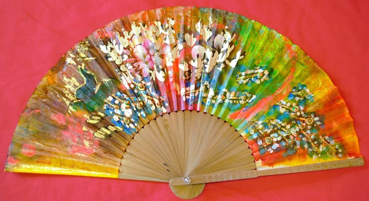 Mixed media on Rice paper. 24k gold, 18k gold, silver; Fluorescent and glow under UV light; 76 cm x 55 cm (painting with frame)